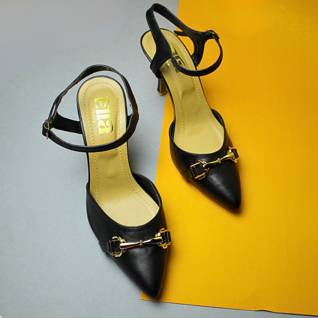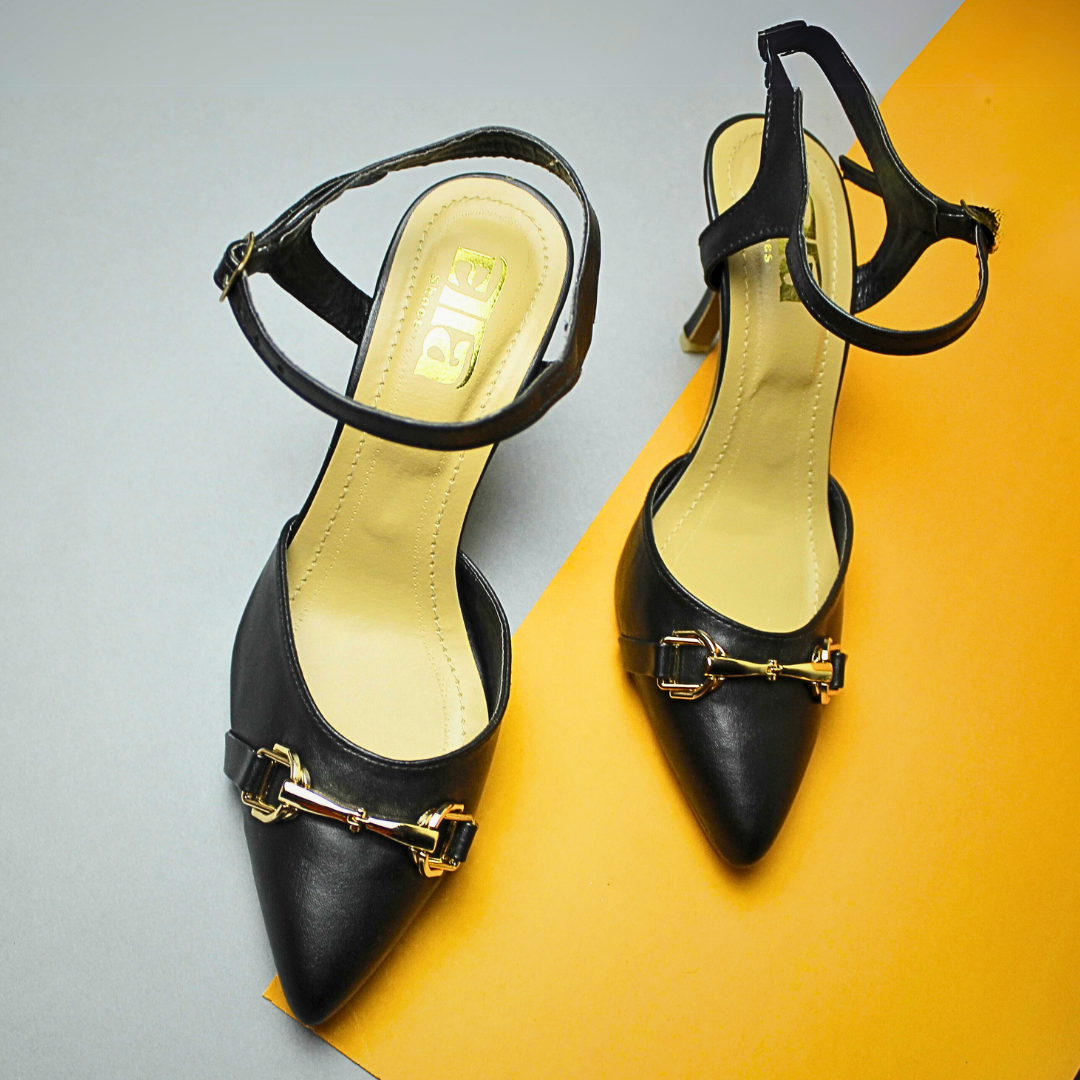 Dive into the allure of the Eclipse, where timeless black meets the luxurious touch of a gold charm that rests on top. These rich deep black heels standout with their Gold charm on the top. They offer unmatched versatility and sophistication, bringing a touch of opulence to any outfit, making them an ideal choice for those who love to subtly command attention.