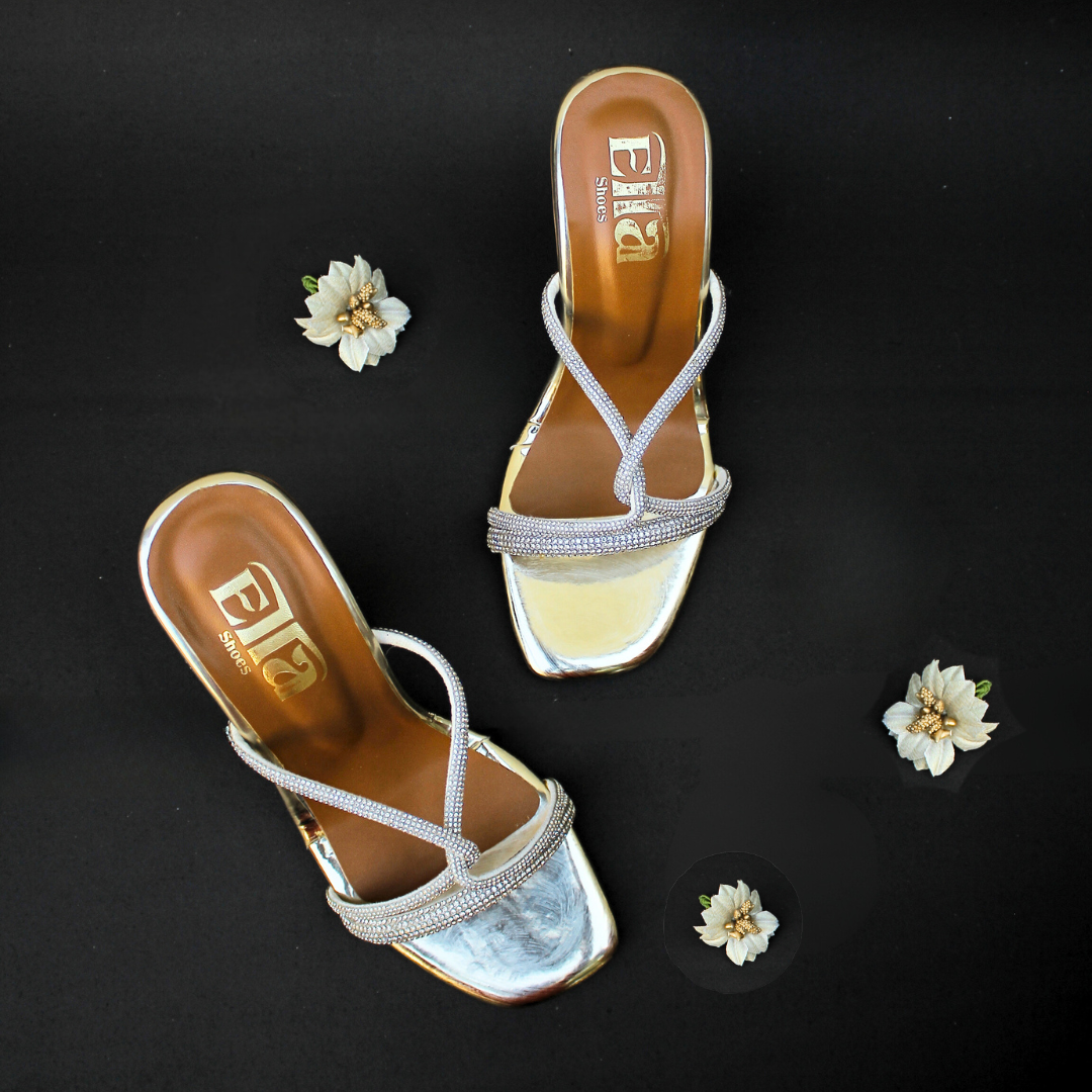 Sugar, Spice and Everything Nice. Meet our stunning heels that wrap around your feet the rope of shimmer, elevating your simple look into breathtaking wonders. Our Etta Shimmering Night add an unmatchable glam, as they are the testament to the fusion of timeless style and modern comfort. These are designed to transform every step into a statement of elegance and confident.